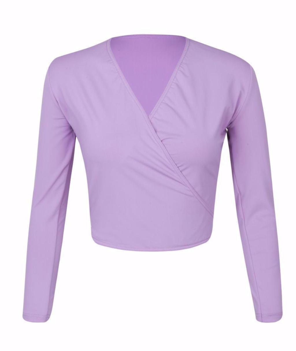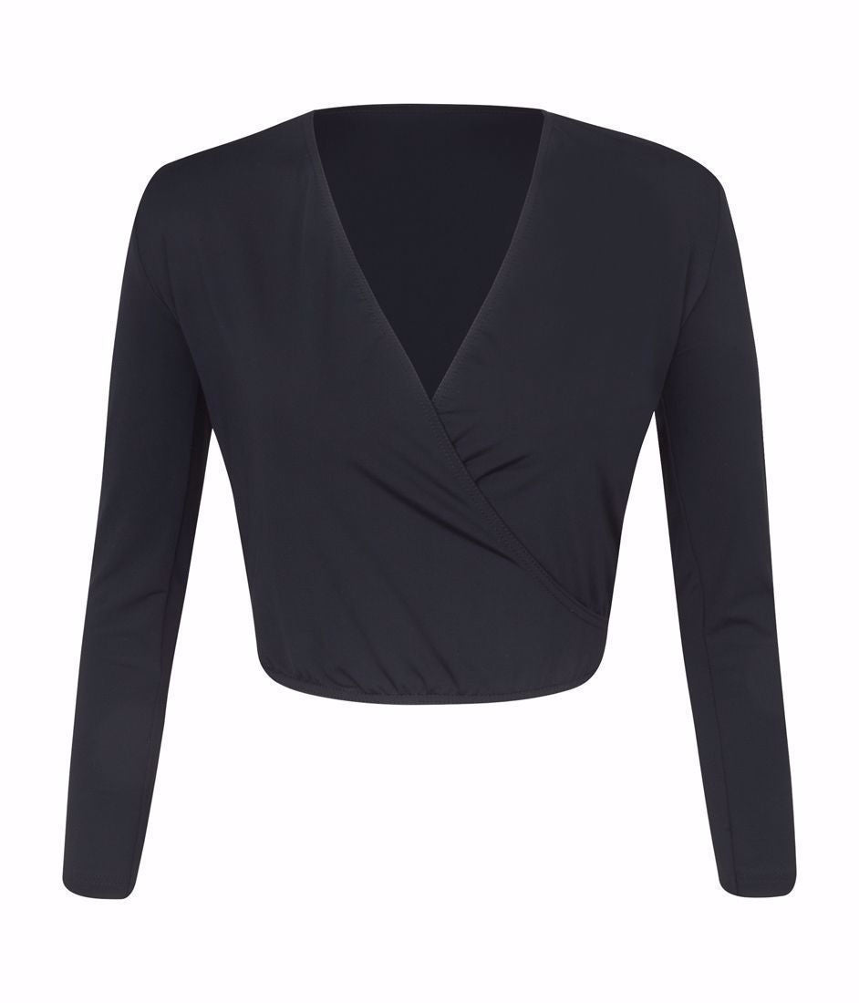 The Freed of London 'Alycia' Crossover long sleeve Wrap Cardigan is an elegant essential designed to complement dancers at all levels. Crafted with a flattering crossover silhouette, it provides comfortable coverage and ease of movement, making it ideal for warming up or layering during rehearsals.