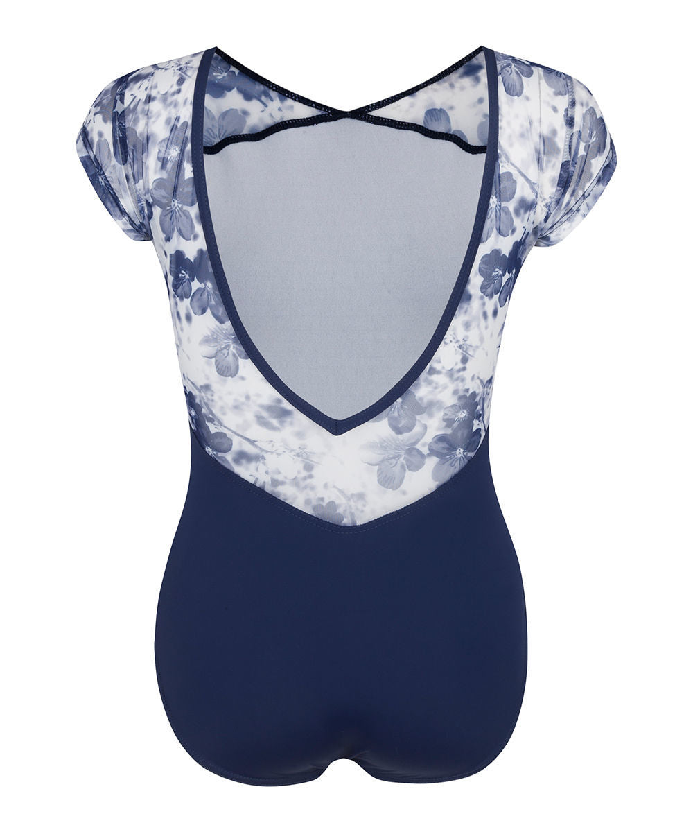 Capped sleeve leotard with Floral print mesh. From the 'Floral collection'.